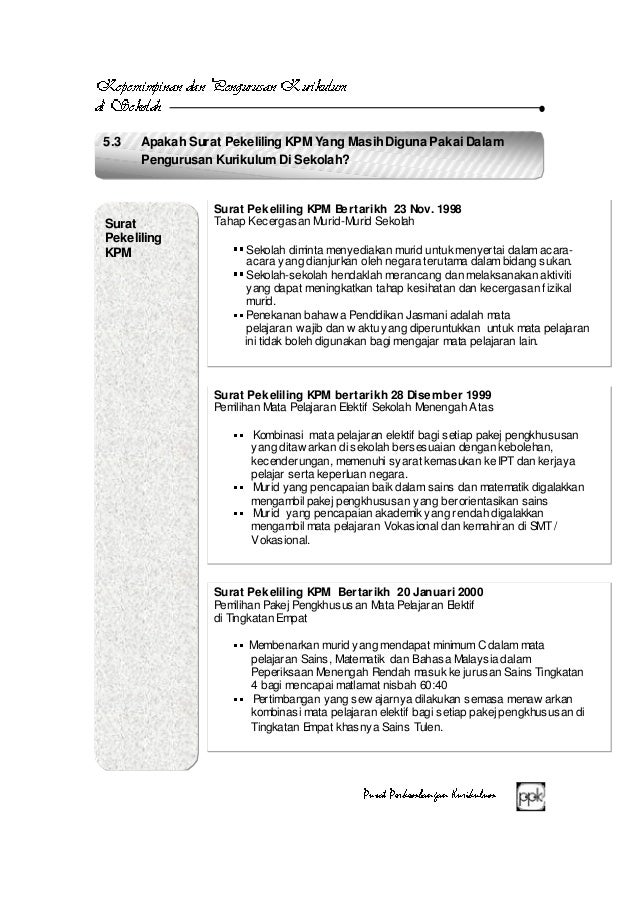 Keselamatan Diri Pelajar Semasa Pembelajaran Pendidikan Jasmani dan Kesihatan serta Kegiatan Kokurikulum dan Sukan Di Dalam dan Di Luar Kawasan Sekolah. Ponteng Sekolah KPBS85481217 Borang DM 9277 1. Daerah GombakPeranan guru bimbingan dan kaunseling dalam menangani Jun 30 2021 Surat Pekeliling Ikhtisas Bilangan 1 Tahun 1991 Penceramah Jemputan Untuk Majlis dan Aktiviti Agama Islam di Sekolah pdf 143 KB Surat Pekeliling Ikhtisas Bil.