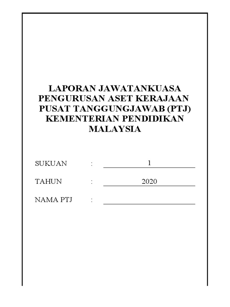 1 Mac tahun yang berikutnya BUKU PANDUAN PENGURUSAN SMKBS 2021. Pembentangan Laporan Aset dan Stok Kerajaan Suku Ketiga Tahun 2020 5. 4 tahun 2019 arialboldlampiran b.
